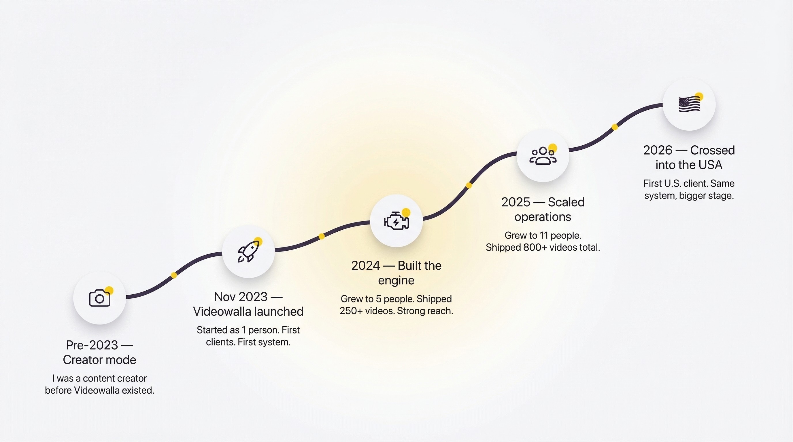 We built Videowalla one system at a time. From creator mode to a full team. This is the journey that taught us what founders actually need: consistency, clarity and execution without chaos.
